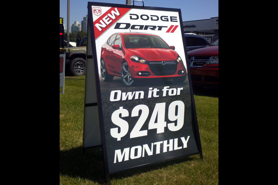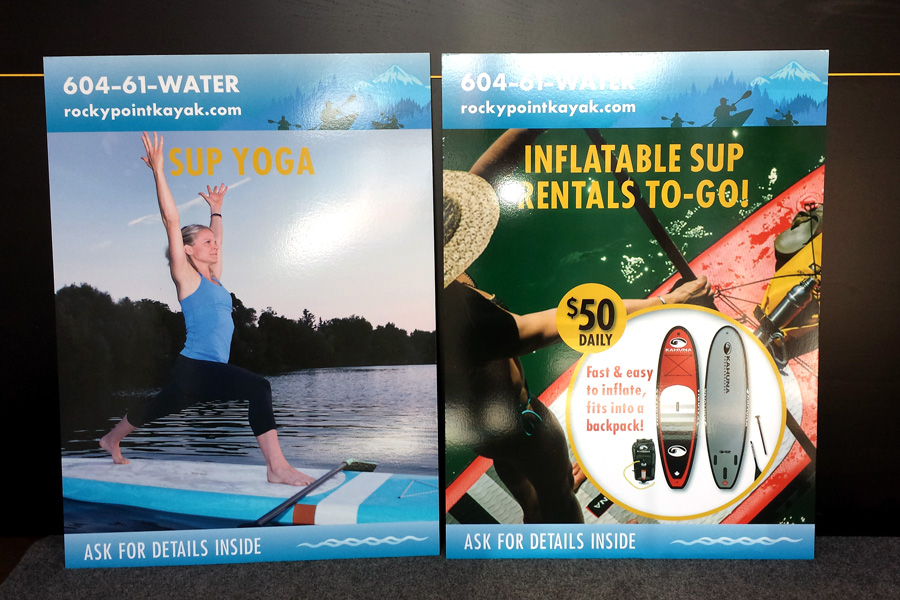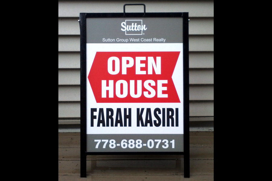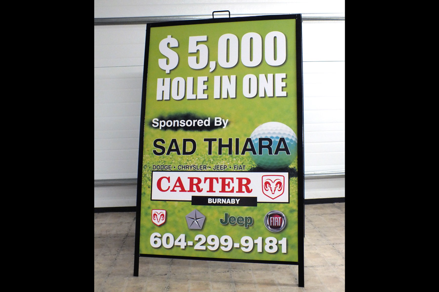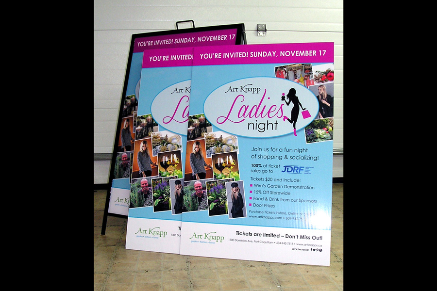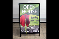 32" x 48" A Frame with coroplast inserts, digital printed, gloss lamin.
