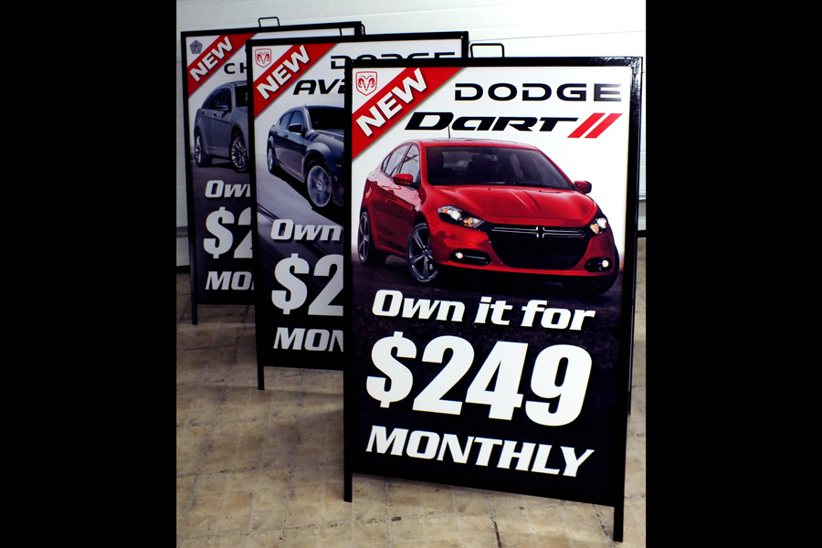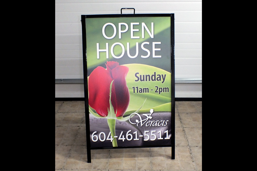 24"x 48" A Frame with coroplast inserts, digital printed, gloss lamin.