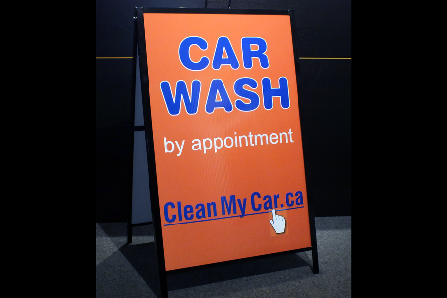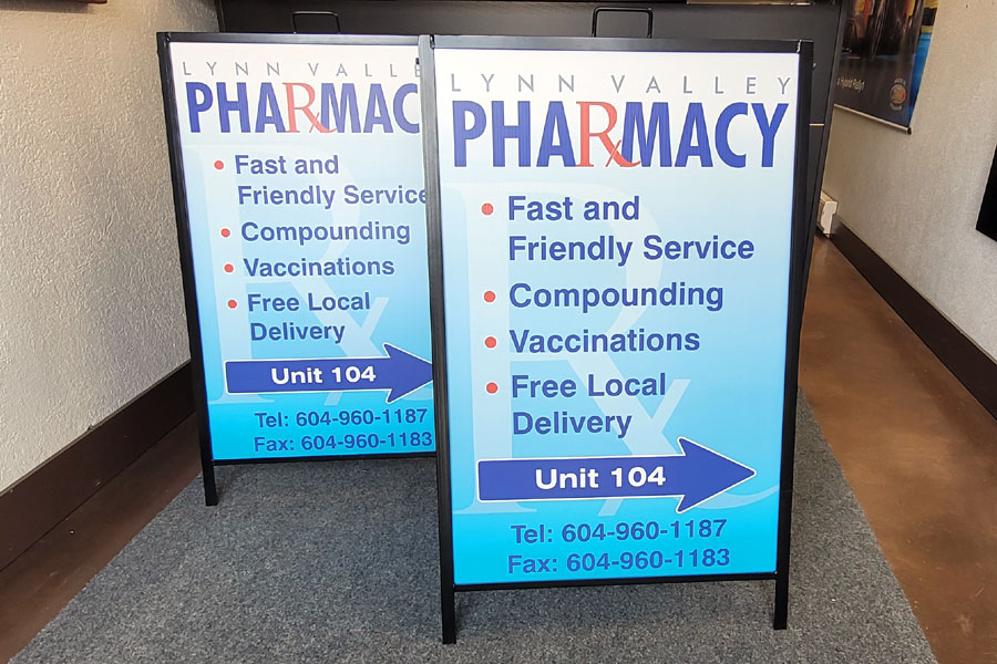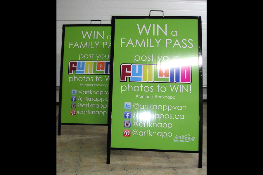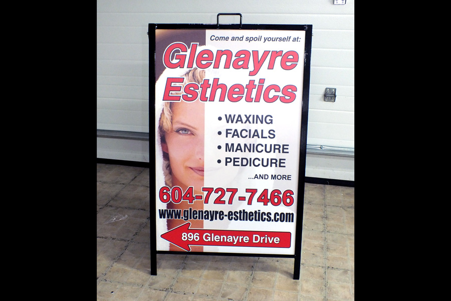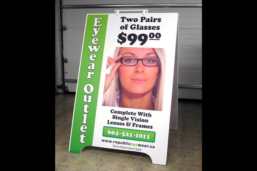 24"x 32" Plastic sandwich board, digital printed, gloss laminated.