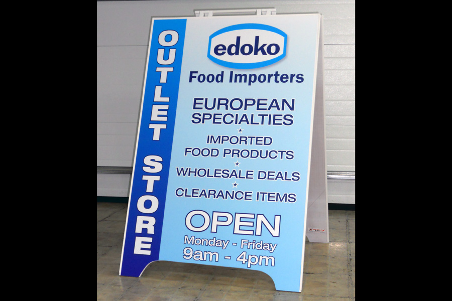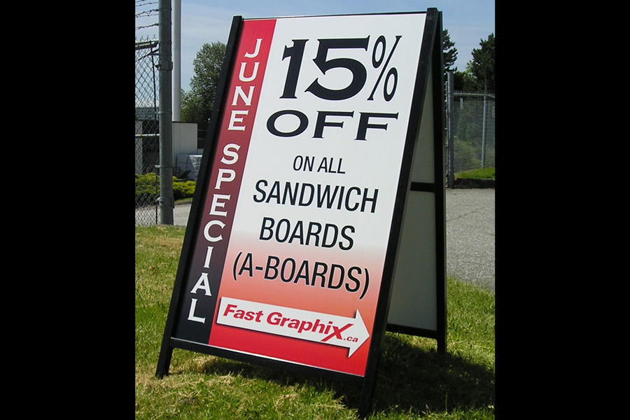 18"x 24" Plastic sandwich board, digital printed, gloss laminated.