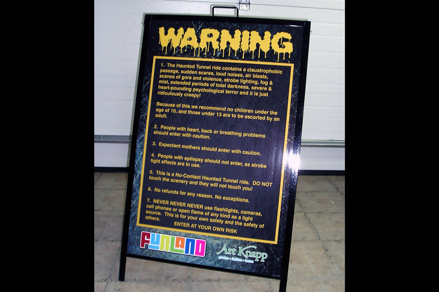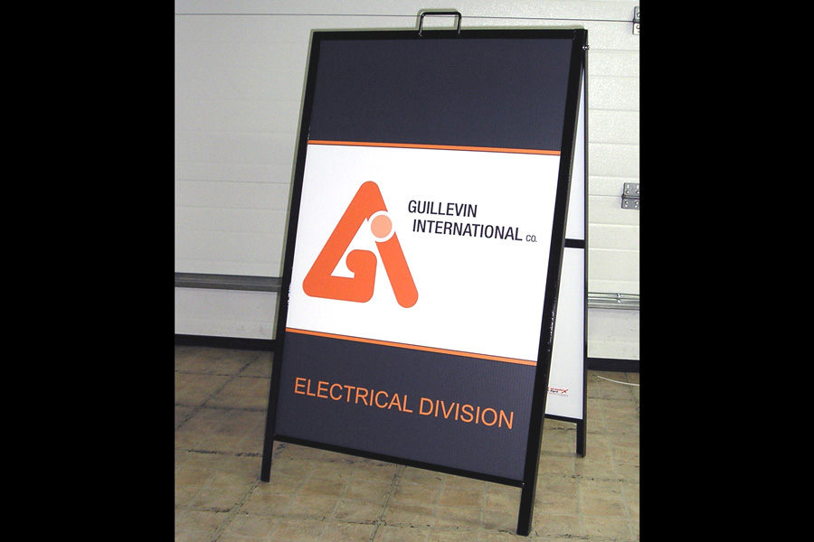 24" x 32" Plastic sandwich board, digital printed, matte laminated.