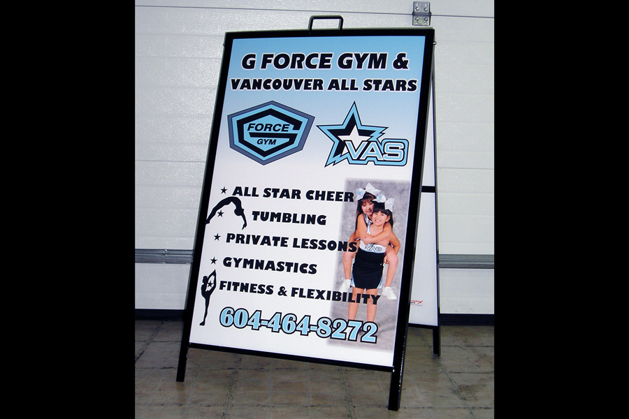 24"x 36" A Frame with coroplast inserts, digital printed, gloss lamin.