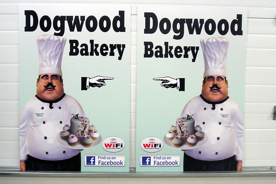 24"x 36" Wood sandwich board, digital printed, gloss laminated.