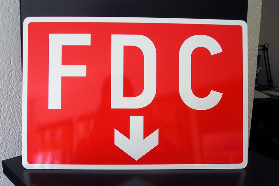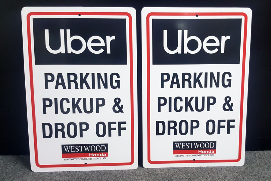 12"x 18" .040 aluminum with Avery red premium cut vinyl.