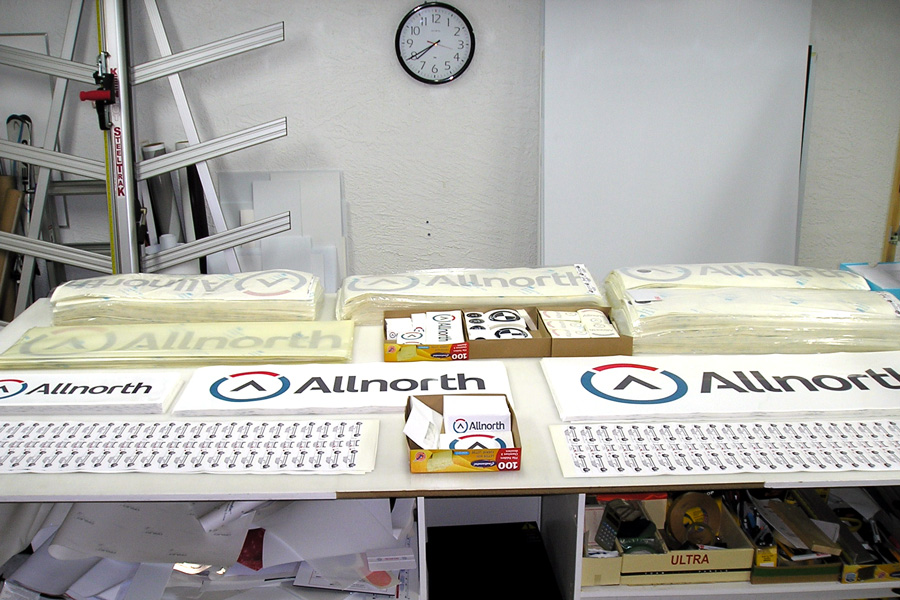 2" x 6" decals, digital printed matte vinyl, contour cut, no lamination.