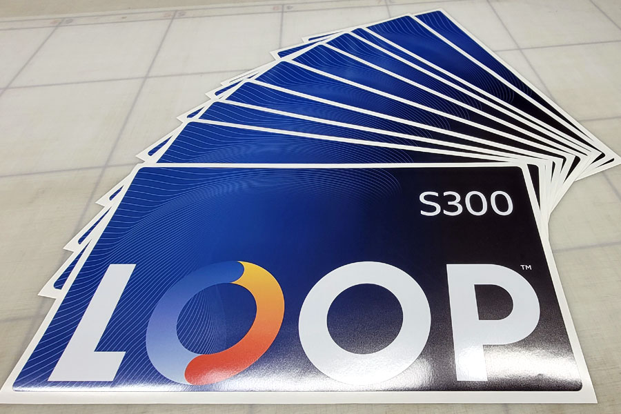 3M digital printed vinyl, gloss laminated, cut contour, package.