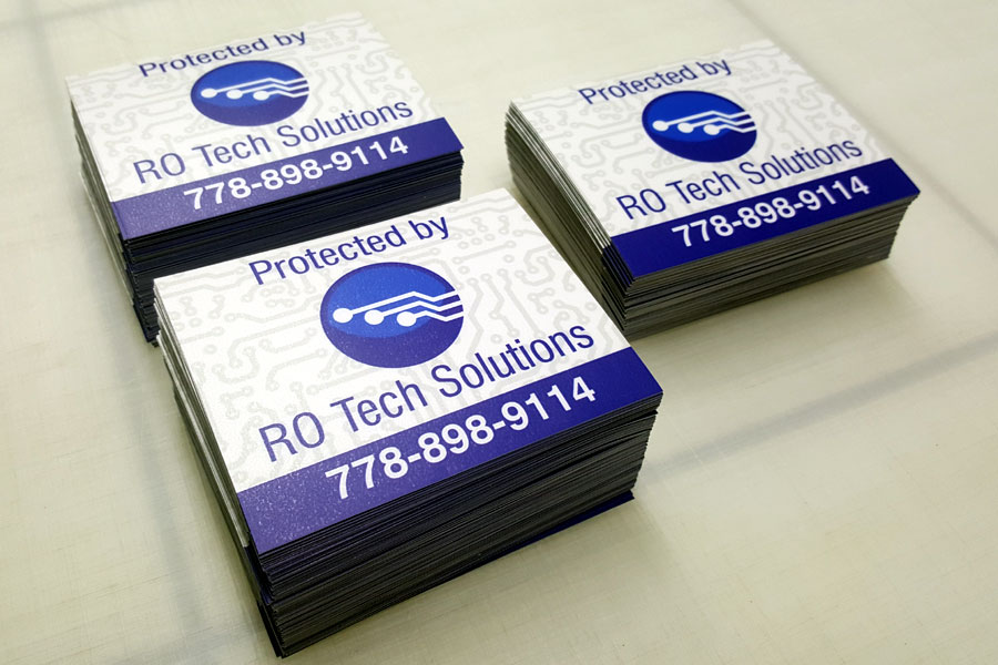 8.5" x 14" decals, digital printed matte vinyl, no lamination.