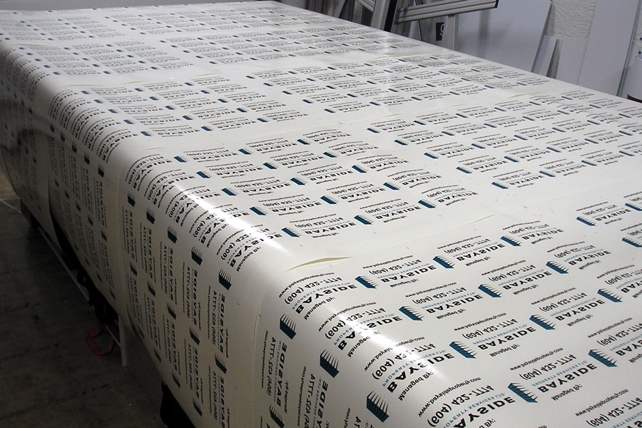 18" x 80" digital printed vinyl with air release adhesive, gloss laminated.