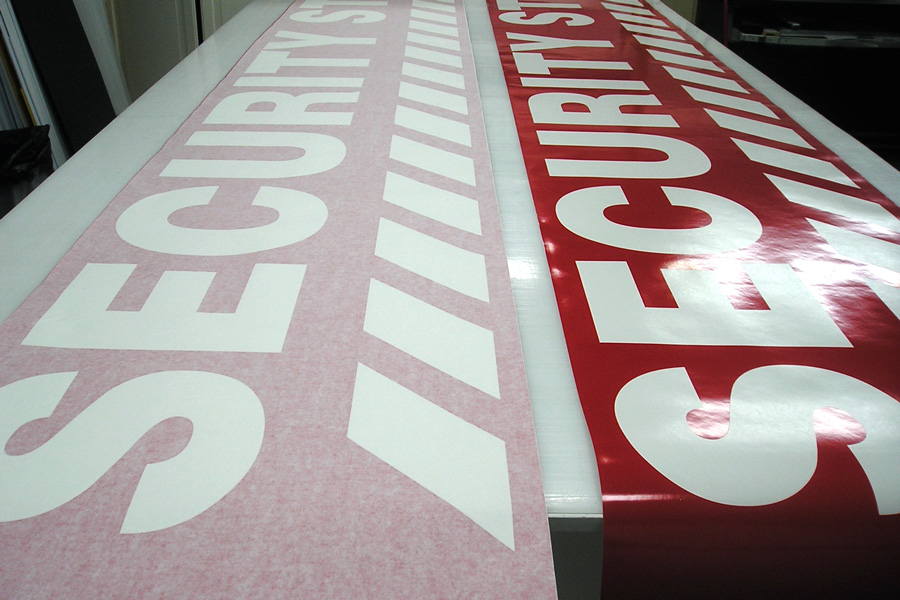 2' x 10' vinyl stencil, cut contour, transfer paper mask, ready to apply.