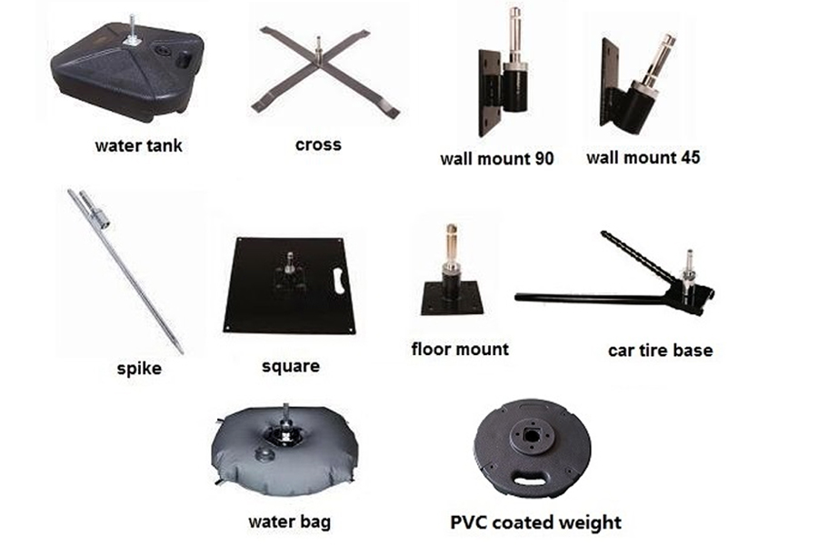 Different types of flag bases and weights.