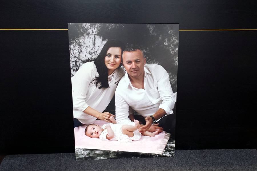 18" x 28" 3/16 black foam board with digital printed vinyl, matte laminated.