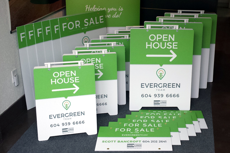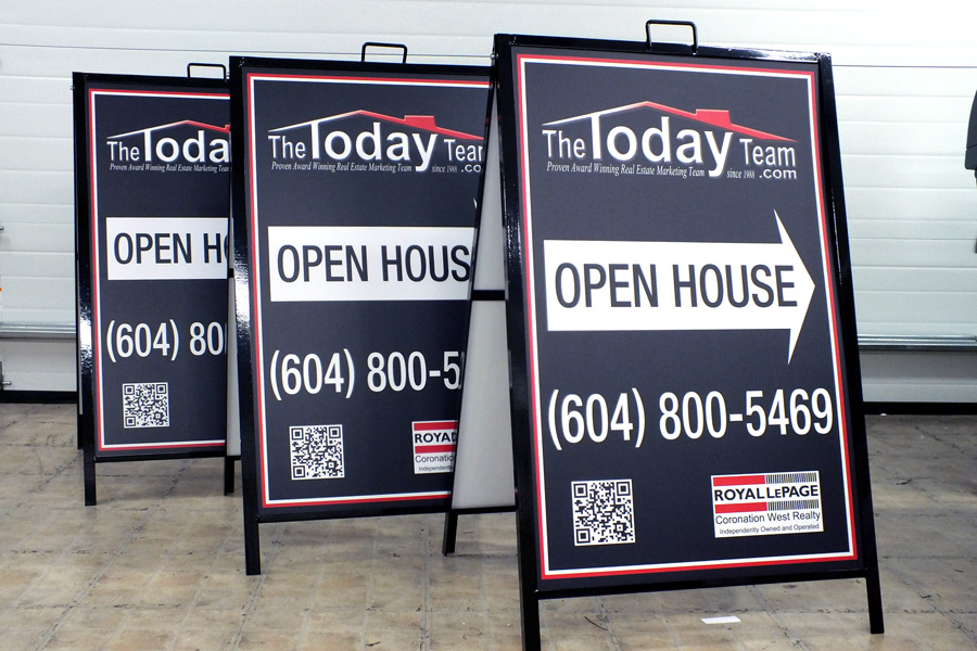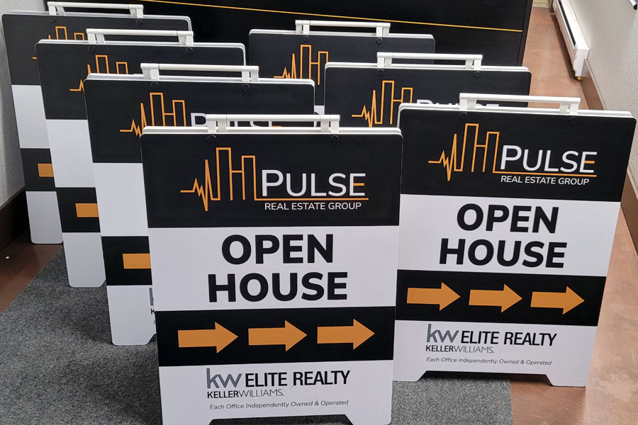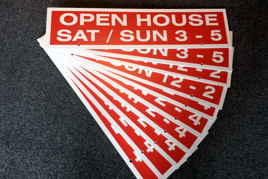Realty signs: directionals, Open House A boards, for sale signs..