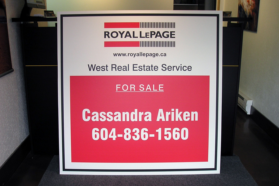 12"x 12" directionals, 4mm coroplast single sided, digital printed.
