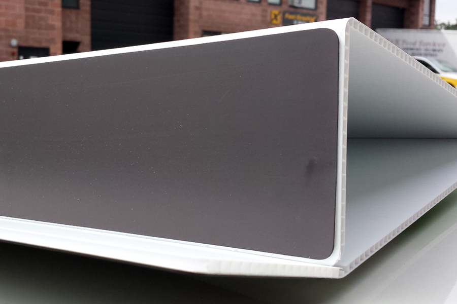 Grommet applied on 4 mm coroplast, detail front