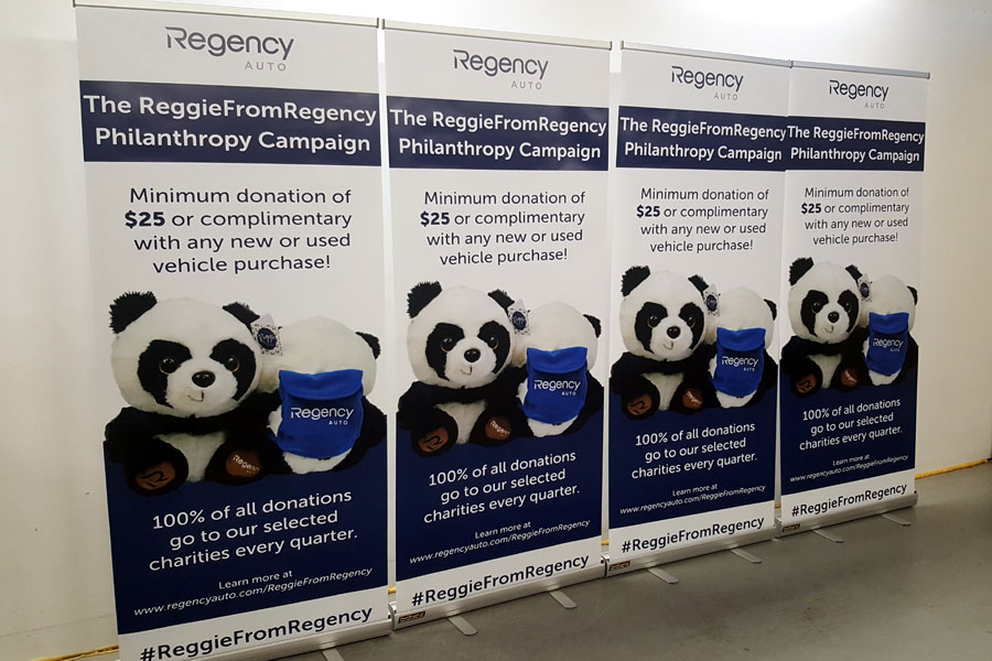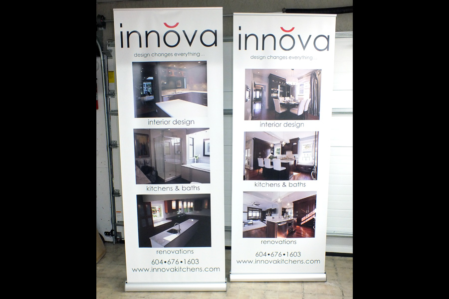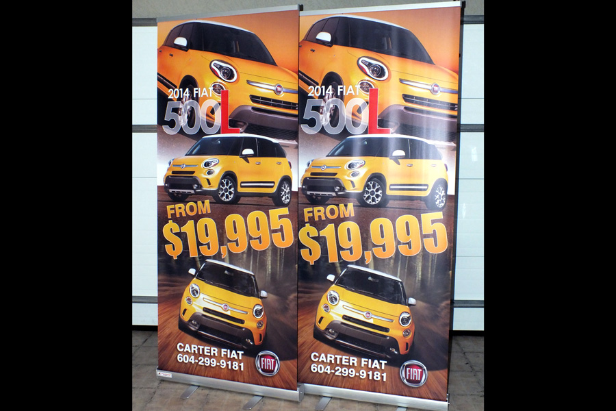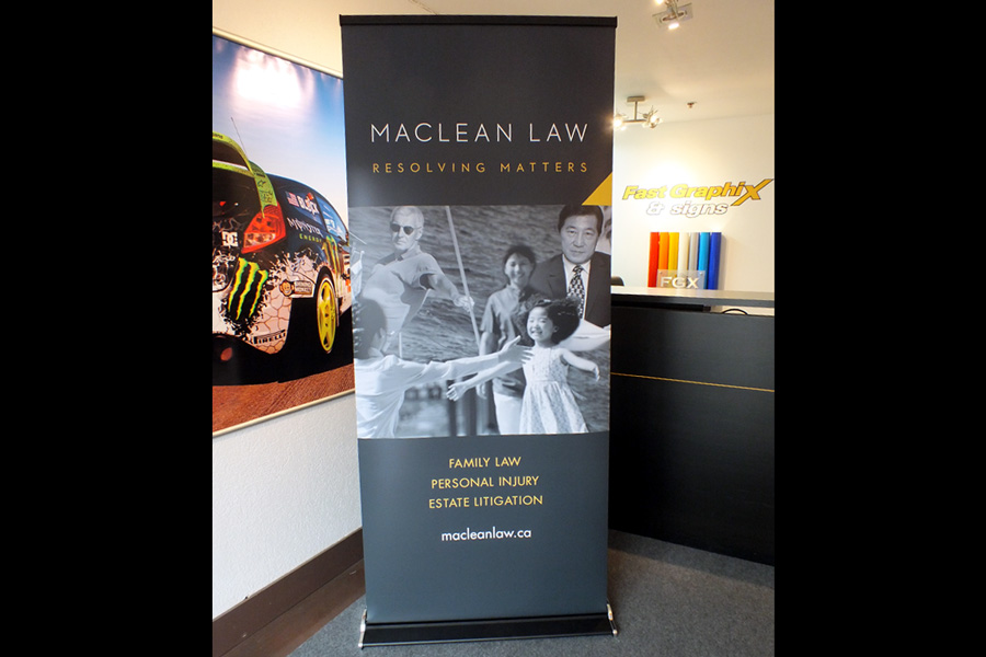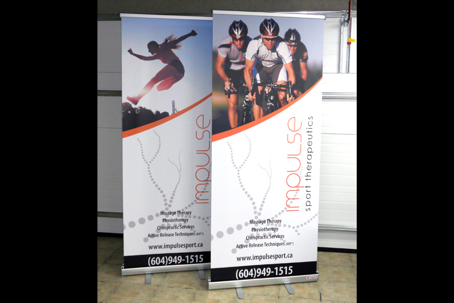 Economy retractable banner stand with 48" x 79" graphics printed on smooth ultrablockout banner material.