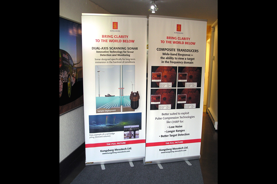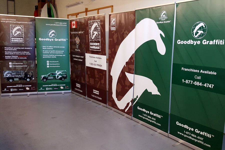 Bambus X banner stand with 24" x 63" graphics printed on smooth ultrablockout banner material.