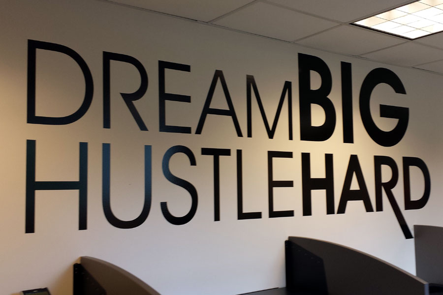 Cut vinyl lettering+ printed laminated wall graphics